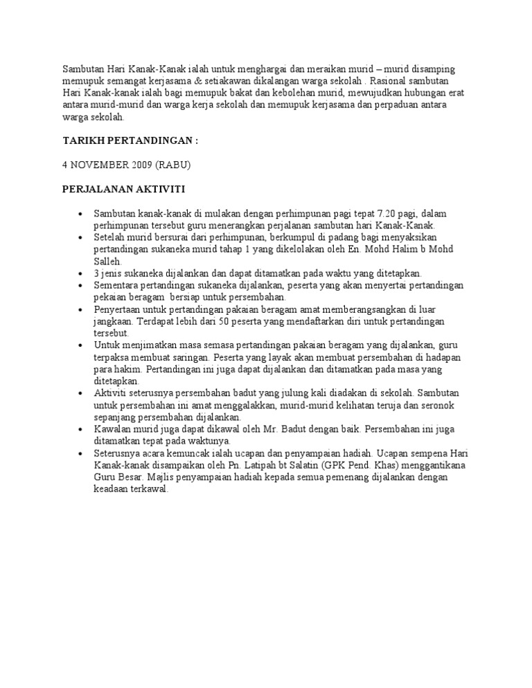 Laporan Sambutan Hari Kanak Pdf